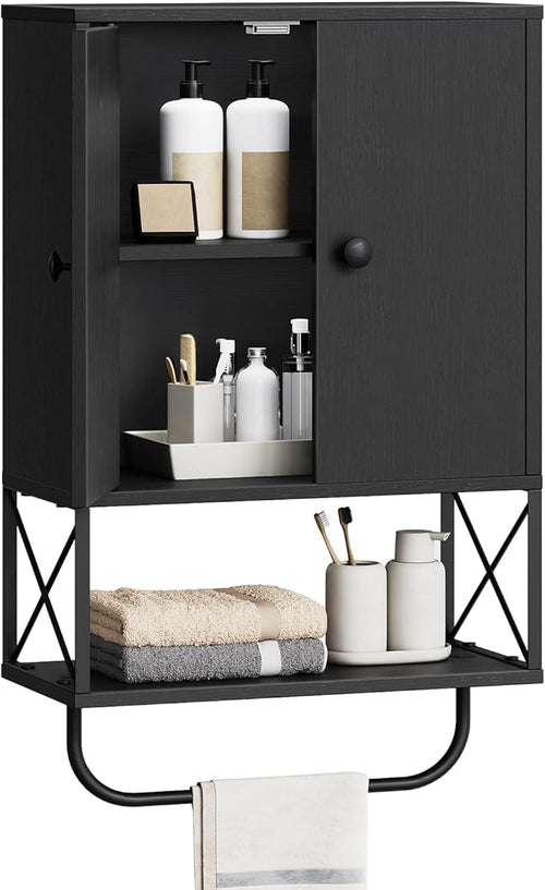 Wall-Mounted Bathroom Storage Cabinet with 2 Doors and Towel Rack
